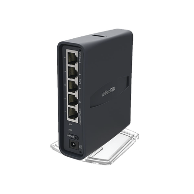 La unidad está equipada con una CPU de 650 MHz, 64 MB RAM, cinco puertos 10/100Mbps Ethernet (salida PoE en el puerto #5), de doble cadena MIMO 802.11b/g/n inalámbrica de 2.4 GHz, de cadena sencilla SISO 802.11ac 5 GHz inalámbrico, puerto USB para 3G / módem 4G y una licencia RouterOS L4.