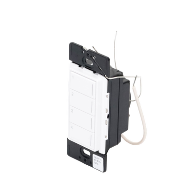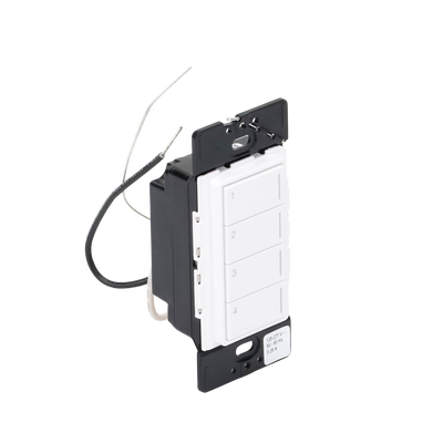 Las botoneras montadas en la pared se instalan en una caja de pared estándar para controlar las luces y/o las cortinas individualmente o en escenas predefinidas. Cuenta con botones retroiluminados y grabado personalizado.