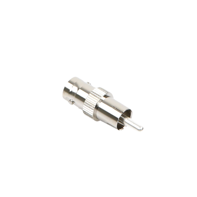 Adaptador de BNC Hembra a RCA Macho tipo Fono para Aplicaciones de Audio-Video, Níquel/ Plata/ Delrin.​