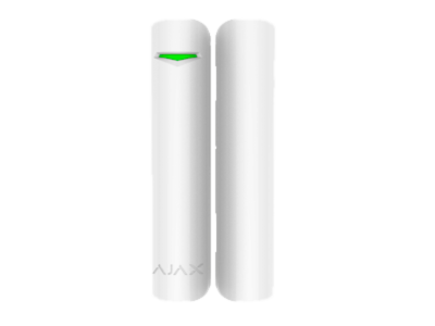 Detector de apertura inalámbrico que alerta al primer signo de intrusión en la habitación a través de una puerta o ventana. Se puede instalar en todo tipo de puertas, incluyendo las de base metálica. El dispositivo detecta la apertura de la puerta o ventana mediante relés reed de alta gama y fabricación británica sobre los que actúa el campo magnético. Puede funcionar en modo transmisor, enviando la señal a la unidad central (Hub) desde el sensor por cable. Consta de dos módulos: detector y magnético. El equipo incluye dos imanes: el imán grande se instala a una distancia de hasta 2 cm, y el imán pequeño a una distancia inferior a 1 cm.