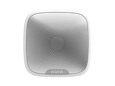Sirena inalámbrica con marco LED y zumbador piezoeléctrico. El dispositivo está diseñado para instalar tanto en exteriores como en interiores. StreetSiren responde a alarmas y a la activación del interruptor anti sabotaje activando el zumbador y el marco LED en menos de un segundo. El botón se activa cuando la carcasa se abre o se rompe, y el acelerómetro se activa cuando alguien intenta mover o arrancar la sirena.