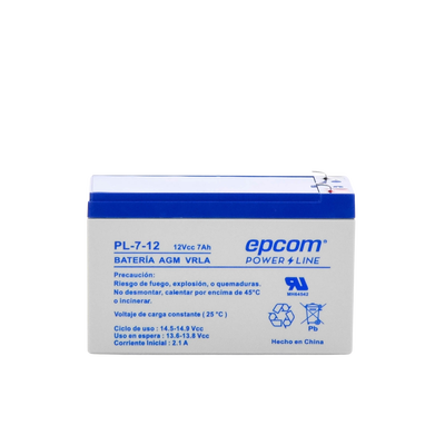 La serie de baterías EPCOM POWERLINE, están diseñadas con tecnología AGM-VRLA ( Fibra de vidrio absorbente, con válvulas de regulación), placas de alto rendimiento y electrólito para proporcionar una salida de energía adicional. Las baterías de la serie EPCOM POWERLINE son baterías de respaldo para equipos electrónicos, con una vida útil de diseño flotante de 5 años a 25°C. , aprobado por UL ( MH64542 ).