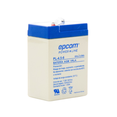 La serie de baterías EPCOM POWERLINE, están diseñadas con tecnología AGM-VRLA ( Fibra de vidrio absorbente, con válvulas de regulación), placas de alto rendimiento y electrólito para proporcionar una salida de energía adicional. Las baterías de la serie EPCOM POWERLINE son baterías de respaldo para equipos electrónicos, con una vida útil de diseño flotante de 5 años a 25°C. Aprobado por UL ( MH64542 ).
