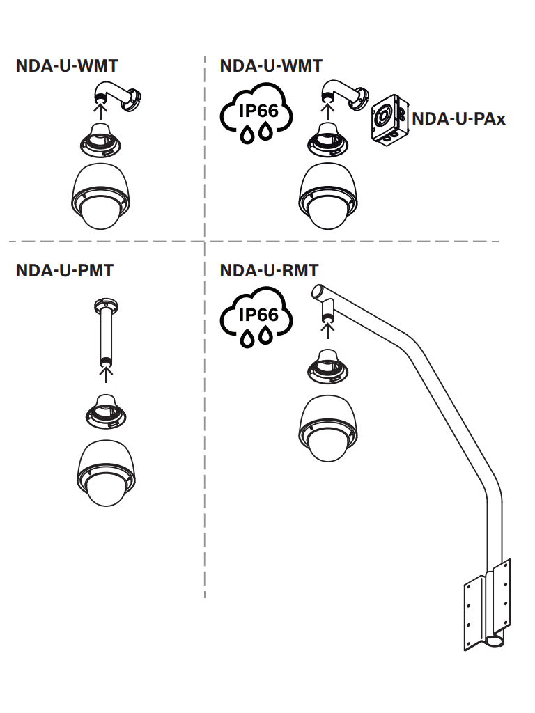 Bosch ha diseñado la cámara sabiendo que los cables de campo y los soportes se instalan antes montar la cámara. El concepto de instalación permite que una sola persona conecte los cables directamente a la cámara sin tener que volver a tender los cables. La cámara se asegura fácilmente al soporte con un único tornillo. La cámara está certificada para proporcionar un grado de protección IP66 y ofrece un rango de temperatura de funcionamiento inferior a -40 °C (-40 °F). La carcasa se entrega totalmente ensamblada con un parasol y preparada para su montaje en la pared o empotrada en el techo, siempre que se disponga del hardware de montaje adecuado (se vende por separado).