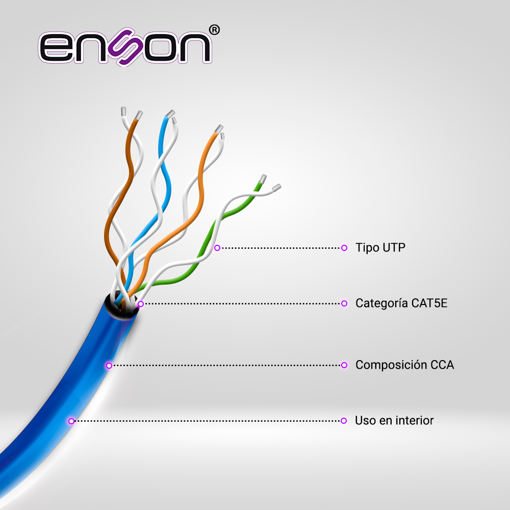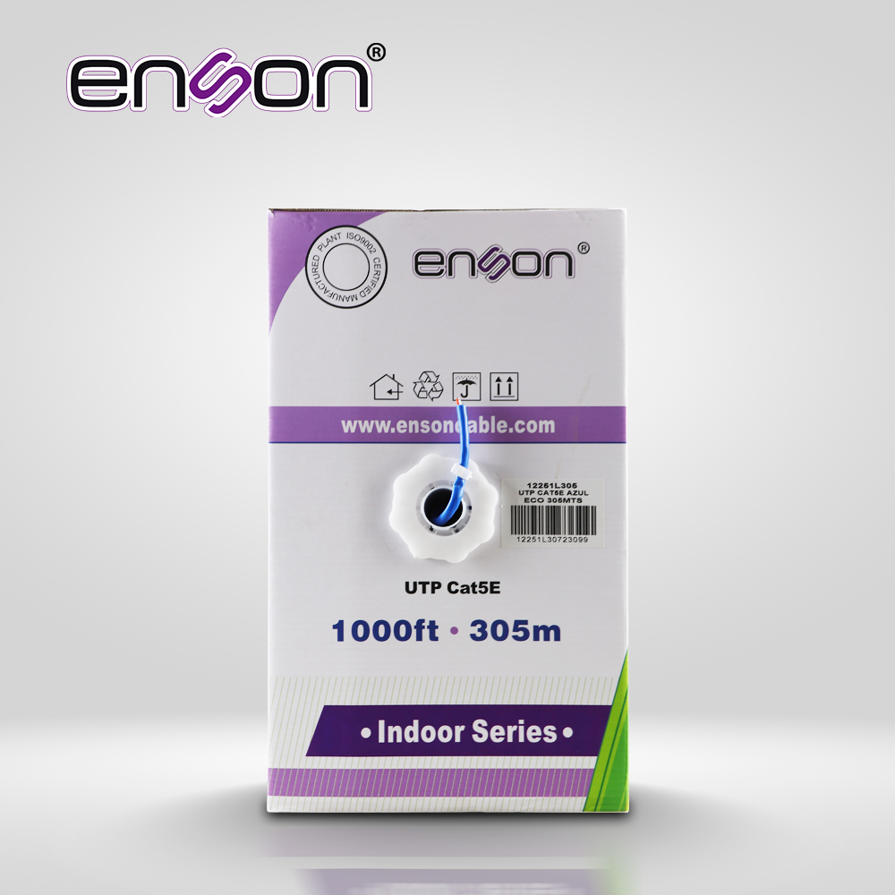 DescripciónComentarios Descripción CABLE UTP CAT5E ENSON 12251L305 SERIE ECO CALIBE 24 AWG CCA BOBINA DE 305 METROS FORRO PVC COLOR AZUL USO INTERIOR RECOMENDADO PARA TRANSMISION DE DATOS BASE 10,100DocumentosFicha técnica Comentarios Sé el primero en opinar sobre este artículo No hay comentarios aún