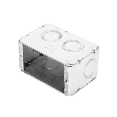 Las cajas multigang de acero galvanizado de 2 1/2' de profundidad con entradas para tubería de 1/2' y 3/4'.