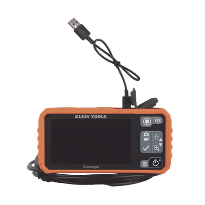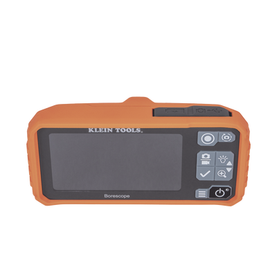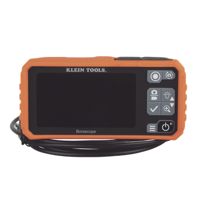 El boroscopio multiusos de Klein Tools captura una vista clara de las áreas de difícil acceso. Viene con una cámara de exploración separable de 10' (3 m) de nylon, USB-C, y accesorios de imán, gancho y espejo. Tiene una cámara impermeable (IP67) de 5,5 mm con LED ajustables con 4 niveles de brillo. Cuenta con un monitor LCD a color de 4,3'' con resolución de 854 × 480, zoom de 3 aumentos y rotación de la vista de pantalla de 180°. Puede ver vídeo o imágenes capturadas en la pantalla o transferirlos a su PC usando la interfaz USB-C.