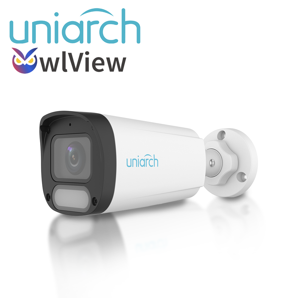CAMARA IP BULLET OWLVIEW UNIARCH IPC-B244-ADF28K-WP / 4MP / LENTE 2.8MM / WDR120DB / LUZ-BLANCA+LUZ-CALIDA30M / MICROSD512GB / MICROFONO-INTEGRADO / ULTRA-MOTION-DETECTION / POE-AF / ONVIF / 3-AXIS / IP67 / METAL+PLASTICO / ULTRA265 / NDAA / SERIE HALO / MODOCORREDOR