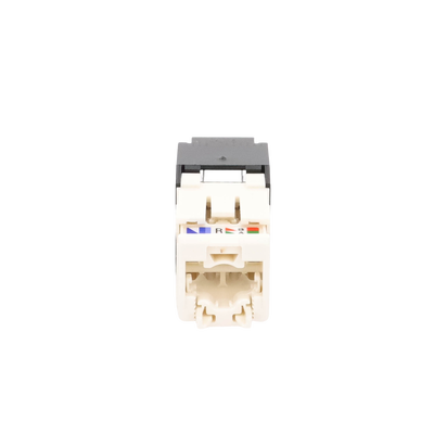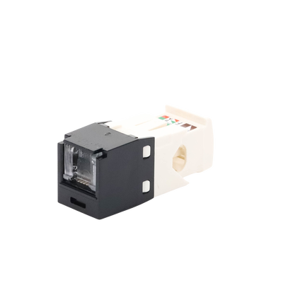 El módulo de conector UTP Categoría 6/Clase E de 8 posiciones, se termina en cable de 4 pares 22 - 26 AWG de par trenzado sin blindaje de 100 ohms y no requiere el uso de una herramienta de impacto. Los módulos de conector UTP usan un método de terminación de movimiento hacia adelante para optimizar el rendimiento al mantener la geometría del par de cables mientras se elimina el destrenzado del conductor. La tapa de terminación esta codificada por color blanco para designar el rendimiento de la Categoría 6 e incluye una etiqueta universal codificada para los esquemas de cableado T568A y T568B.
