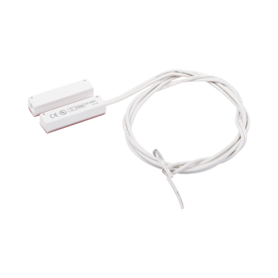 El Sensor magnético para ventanas y puertas consta de un imán y un reedswitch (interruptor magnético). Este sensor funciona como un switch normalmente cerrado (mientras hay campo magnético). Cuando la puerta o ventana se abre, el circuito eléctrico también se abre y es posible detectar la apertura de la misma.