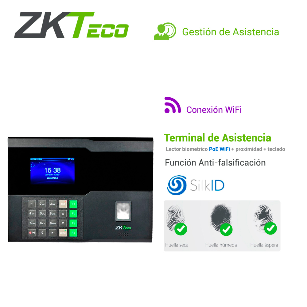 CONTROL DE ASISTENCIA CHECADOR ZKTECO IN05/ID ADMS BIOMETRICO SILKID 3000HUELLAS/10,000TARJETAS125KHZ/100,000REGISTROS TCPIP/POE /WIFI/RS232/BATERIA INTERNA **REQUIERE LICENCIA PARA BIOTIME PRO**