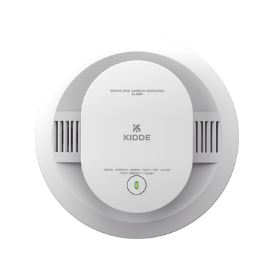 Esta alarma ofrece un diseño moderno de 5” ideal para todos los espacios habitables. Corte La tecnología de punta envía alertas rápidas que le dan a su familia más tiempo para salir La tecnología de detección mejorada y segura reduce las falsas alarmas que a menudo causan cocinando. Completamente probado y diseñado según el último estándar UL de seguridad y confiabilidad, esta alarma Kidde DETECT funciona con 2 AA reemplazables Baterías (incluidas) para detección continua incluso durante cortes y alertas. usted a fumar y monóxido de carbono (CO) utilizando un único y rentable dispositivo. Además, se prueba automáticamente y es fácil de instalar con el sistema de giro y clic incluido. soporte de montaje. Equipada con notificaciones de fin de vida útil, la alarma emitirá un pitido.