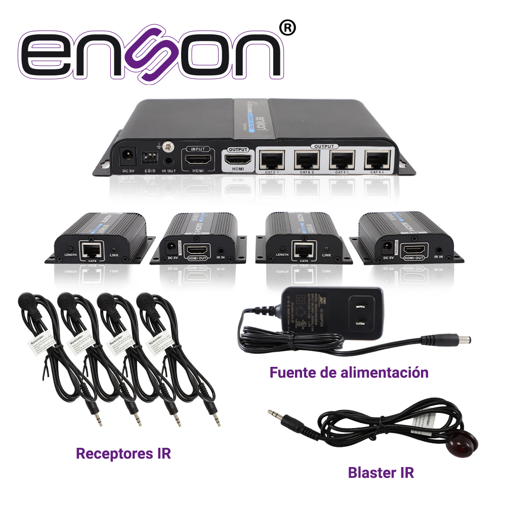 DescripciónComentarios Descripción DISTRIBUIDOR EXTENSOR HDMI ENSON ENS-EX704 CON 4 EXTENSORES DE HASTA 40MTS CON CABLE 100% COBRE CAT6 A 1080P SALIDA HDMI LOCAL HDMI-LOOP Y CONTROL DE IRDocumentosFicha técnica Comentarios Sé el primero en opinar sobre este artículo No hay comentarios aún