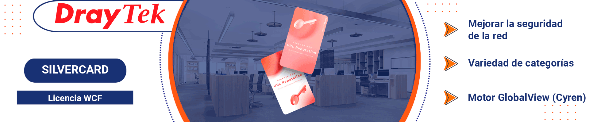 La Silvercard de DrayTek es una licencia de seguridad avanzada que activa el servicio de Filtrado de Contenido Web (WCF) de nivel empresarial en routers de alto rendimiento. Potenciada por la tecnología en la nube de Cyren GlobalView, permite clasificar y bloquear automáticamente sitios web en tiempo real mediante 64 categorías dinámicas, protegiendo la red contra amenazas como malware y phishing mientras optimiza la productividad laboral. Es la solución ideal para quienes buscan un control granular y una defensa proactiva en modelos de alta gama como las series Vigor 2962, 3910 y 3912.
