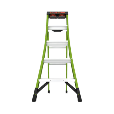 Es el sueño de un electricista hecho realidad. Fabricado con fibra de vidrio ligera y duradera, puede trabajar cerca de la electricidad sin temor a la conductividad. El color verde de alta visibilidad también promueve una mayor visibilidad para disminuir los golpes de la escalera.