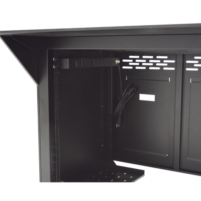 Estación Mobiliaria Profesional de Monitoreo y Control / Videovigilancia / Acceso / Alarmas / Etc... / Metal Negro y Madera Tono Oscuro