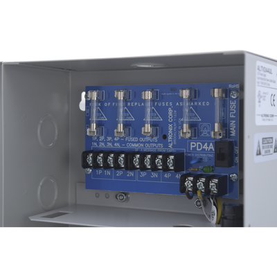 FUENTE DE ALIMENTACION DE 24 VCA PARA CONEXION DE CAMARAS DE CCTV, 4 SALIDAS Y MONTAJE DE PARED