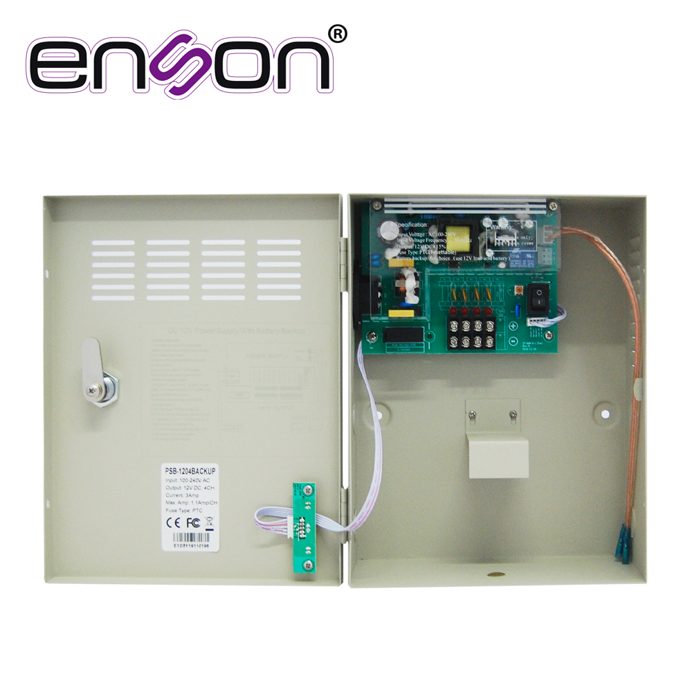 FUENTE DE PODER TIPO CAJA ENSON PSB-1204BACKUP 12VDC 3A 4 CANALES DE 0.75A CADA UNO Y SOPORTE DE BATERIA DE RESPALDO (NO INCLUYE BATERIA) IDEAL PARA CCTV Y CONTROL DE ACCESO, BATERIA COMPATIBLE BT412
