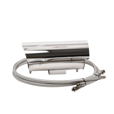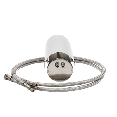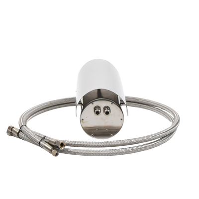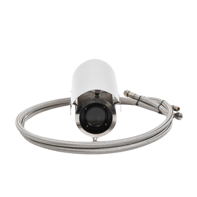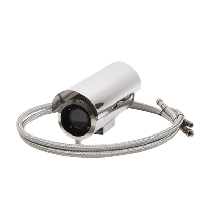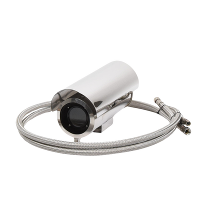 Características del Gabinete. -Fabricado en capa dual de acero inoxidable. -Soporta IP68 para intemperie. -Bracket semi-fijo y 2 mangueras Incluidos. -2 Entradas de 10 mm de diámetro para cableado. -Válvulas de Entrada/Salida de agua G1/4'. -Diámetro del vidrio frontal de 65 mm. -Dimensiones ext. 300 x 134 x 151 mm. -Dimensiones int. Diámetro 100 mm, Largo 280 mm. -Temperatura de operación 0º a 250ºC. Peso 4 kg. -Alimentación incluida 110 Vca. a 12 Vcc para cámara.