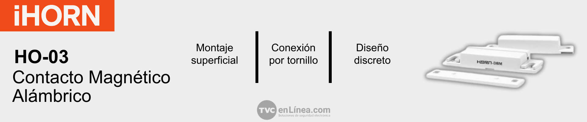 El IHORN HO-03 Contacto magnético cableado tradicional para proteger puertas y ventanas en paneles de intrusión que soporten zonas cableadas en su tarjeta de conexiones. compatible con todo tipo de panel de alarma en soluciones de tipo cableado tradicional.