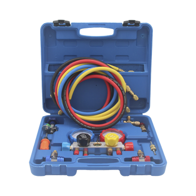 Juego de manómetros para aire acondicionado, herramienta de carga de refrigerante, doble válvula con adaptadores de acoplamiento rápido, manguera de 1.5 metros para refrigerantes : R410A, R32, R134A, R22