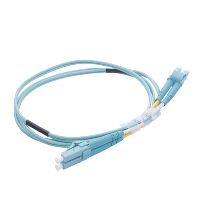 Jumper de Fibra Óptica Multimodo OM4 50/125 LC-LC OFNR (Riser), 2.0 mm, Dúplex, Aqua, 1 metro