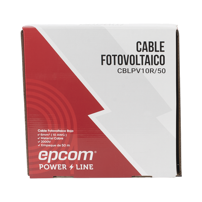 1 x Carrete de 50 m Cable Fotovoltaico Rojo / 6mm² (10AWG) Cobre Tipo PV, 1000 / 2000 V 120 °C.