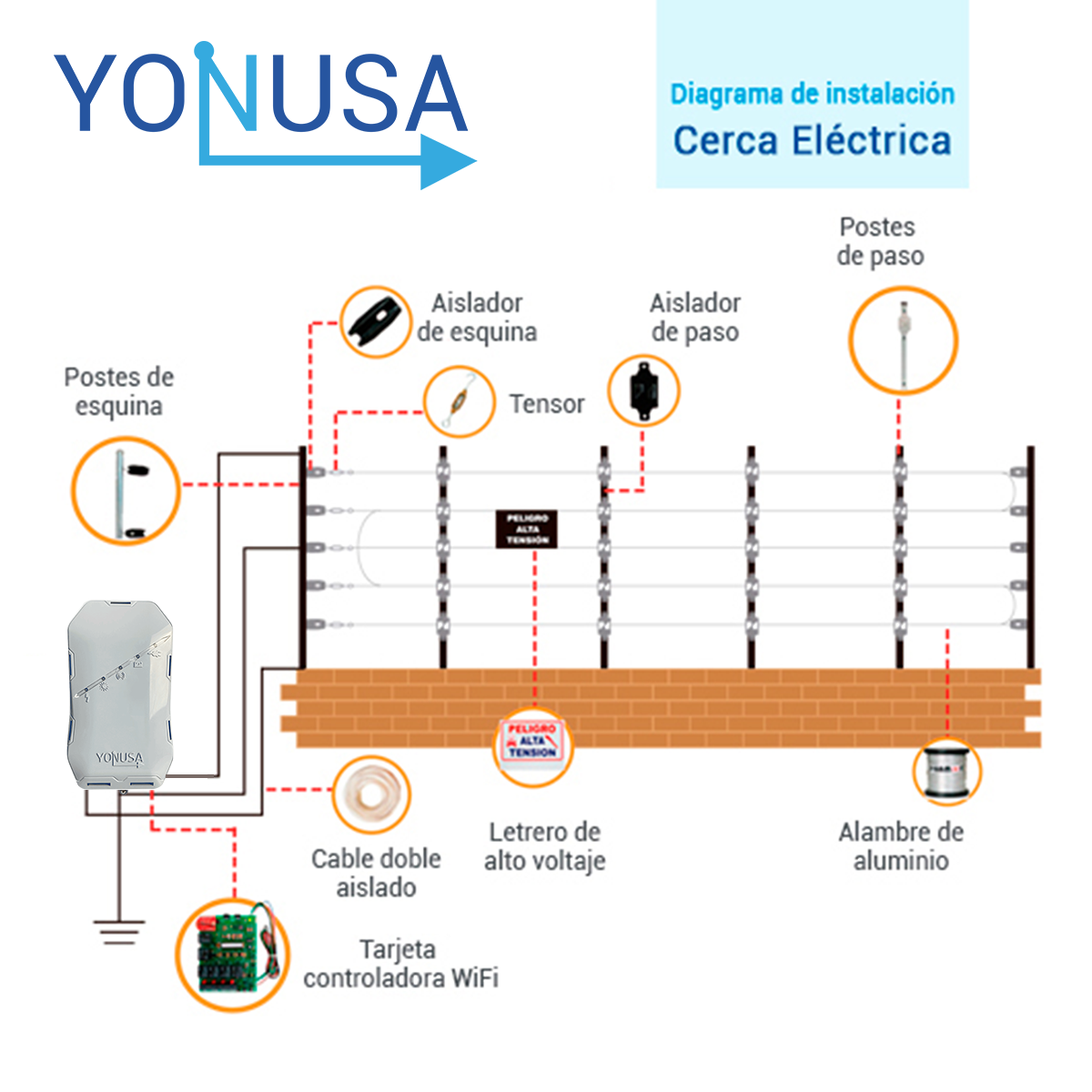 KIT DE CERCA ELECTRIFICADA CON ACCESORIOS PARA 100METROS INCLUYE: