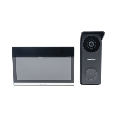 Kit de Videoportero Hibrido TurboHD con Pantalla LCD touch de 7" Wi-Fi / Frente de Calle para Exterior Metalico / 720p (1 Megapíxel )117° de Visión (Gran Angular) / Llamada a App Hik-Connect
