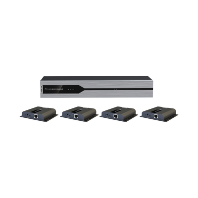 Kit Divisor y Extensor HDMI (Extender Splitter) / Divide 1 Fuente HDMI a 4 Pantallas / Extiende la señal HDMI hasta 120 m / Resolución 4Kx2K @ 30 Hz / Cat 6/6a / Uso 24/7 / Longitud del cable autoajustable