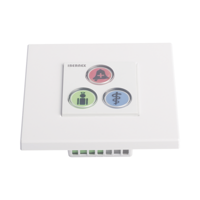 Características eléctricas y físicas: Características Destacadas:El módulo de botones NX0394 es uno de los periféricos del sistema de llamadas paciente-enfermra de Ibernex. Los tres botones disponibles en el módulo se encuentran iluminados bajo configuración y permiten desencadenar llamadas de petición de ayuda, ayuda urgente y alarma médica.