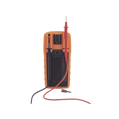 - Probador que mide voltaje de hasta 1000 V CA/CD, corriente de 10 A CA/CD, resistencia de hasta 40 MΩ, más temperatura, capacitancia, frecuencia, baja impedancia (LoZ), ciclo de servicio, diodos de prueba y continuidad