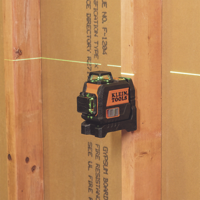 El nivel láser verde autonivelante recargable tiene 3 planos láser verdes brillantes de 360 grados fáciles de leer con un rango de trabajo de 100' (30,5 m), hasta dos veces más brillantes que los haces de luz roja regulares
