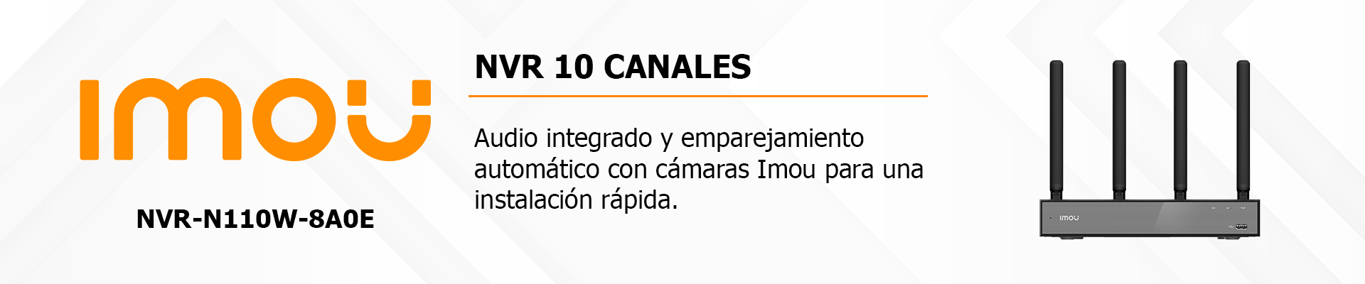 La NVR-N110W-8A0E es una solución de grabación inalámbrica avanzada que admite hasta 10 cámaras simultáneas. Está equipada con antenas de alto rendimiento y compatibilidad con Wi-Fi 6 dual-banda, lo que mejora la cobertura inalámbrica del sistema. Cuenta con micrófono y altavoz integrados para intercomunicación sin equipo adicional. Facilita el emparejamiento automático con cámaras Imou para una configuración rápida. Incluye salidas HDMI y VGA para visualización directa, y permite almacenamiento con discos duros de hasta 16 TB. Soporta los estándares H.265/H.264 y protocolo ONVIF para integración con sistemas de terceros.