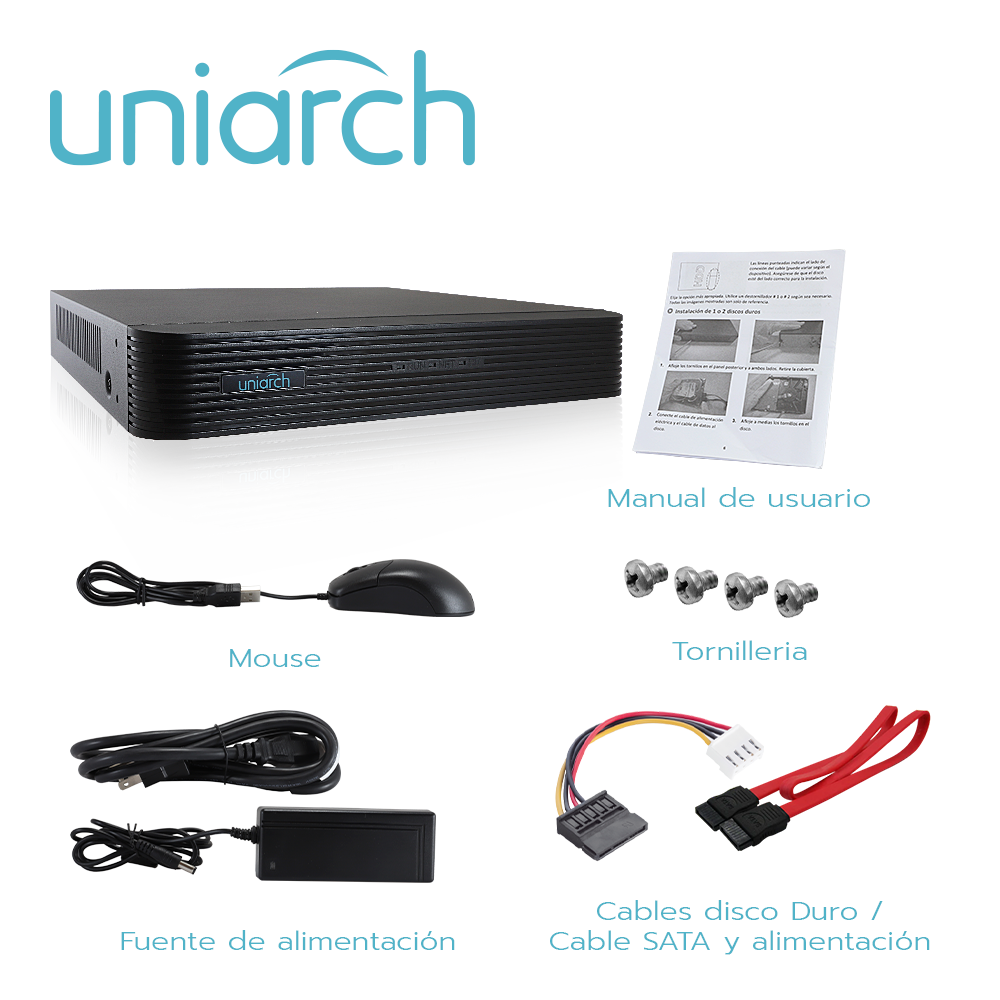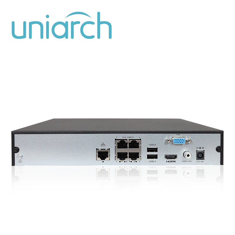 NVR UNIARCH NVR-104E2-P4 / 4 CANALES / 4 CANALES POE CAPACIDAD 1 DISCO DURO DE 8 TB / SALIDA HDMI / SALIDA VGA SIMULTANEAS / 40 MBPS / ULTRA265 / P2P (EZCLOUD)