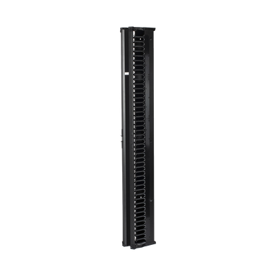 Disponibles en modelos de una y dos caras, este administrador de cables vertical se monta en los lados de o entre racks de marco abierto de 2 y 4 postes. La parte frontal del administrador brinda soporte, administración y alta capacidad para patch cords, mientras que la parte posterior admite cables Cat 5e, 6, 6A y fibra óptica.