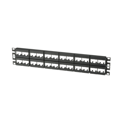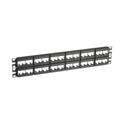 Los paneles de parcheo modulares consisten en un panel de metal con placas frontales moldeadas a presión que se pueden soltar por la parte delantera. Los paneles de conexión aceptan todos los módulos Mini-Com® para aplicaciones UTP, STP, fibra o A / V y deben montarse en Rackso o Gabinetes estándar de 19'. Los paneles de conexión estan disponibles en densidad estándar de 24 y 48 puertos y alta densidad de 72 puertos. Los paneles de conexión angulados se diseñarán en un ángulo óptimo para ayudar a enrutar el cable.