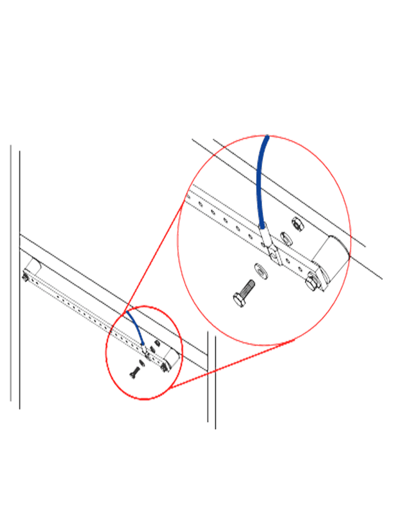 Barra de interconexión de tierras físicas en racks y gabinetes.