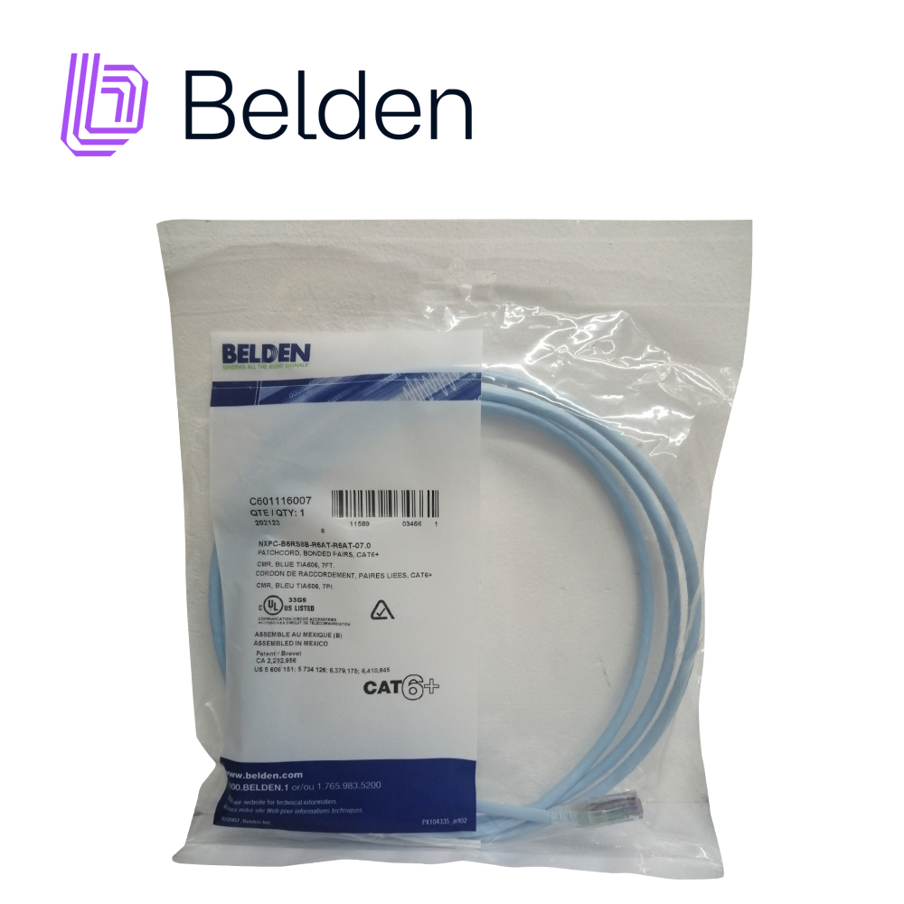 PATCHCORD UTP CAT6 BELDEN C601116007 FORRO PVC AZUL CLARO CMR-RISER 4 PARES CALIBRE CONDUCTOR 24 AWG 100% COBRE USO INTERIOR PARTES RELACIONADAS:CONECTORES MODULARES CAT6 PATCH PANEL CAT6 LONGITUD 7 PIES 2.1 METROS