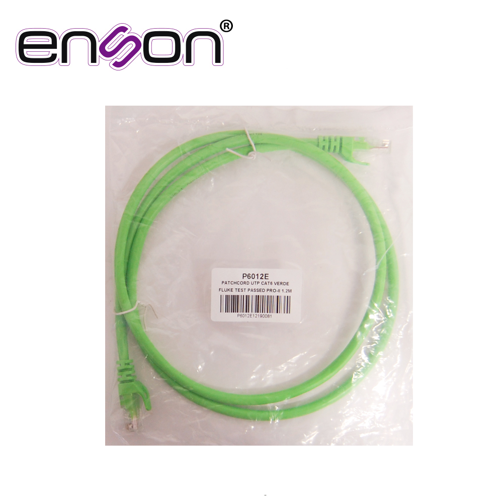PATCHCORD UTP ENSON P6012E CAT6 120CM VERDE SERIE EPRO 100-II 100 POR CIENTO COBRE PARA MEJOR IDENTIFICACION DE SOLUCIONES EN RACKS Y GABINETES