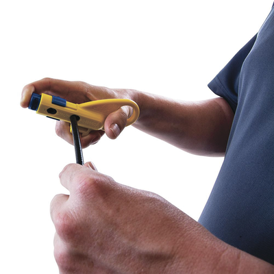 - La herramienta de calidad superior posee un calibre de profundidad deslizable que premide el cable coaxial para permitir su pelado rápido, preciso y repetible de 5/16'' (7,9 mm) y 1/4'' (6,4 mm).