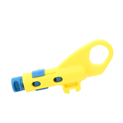 - Una cuchilla externa adicional en un diseño estructurado le permite al usuario cortar el revestimiento de cables transversal o longitudinalmente.