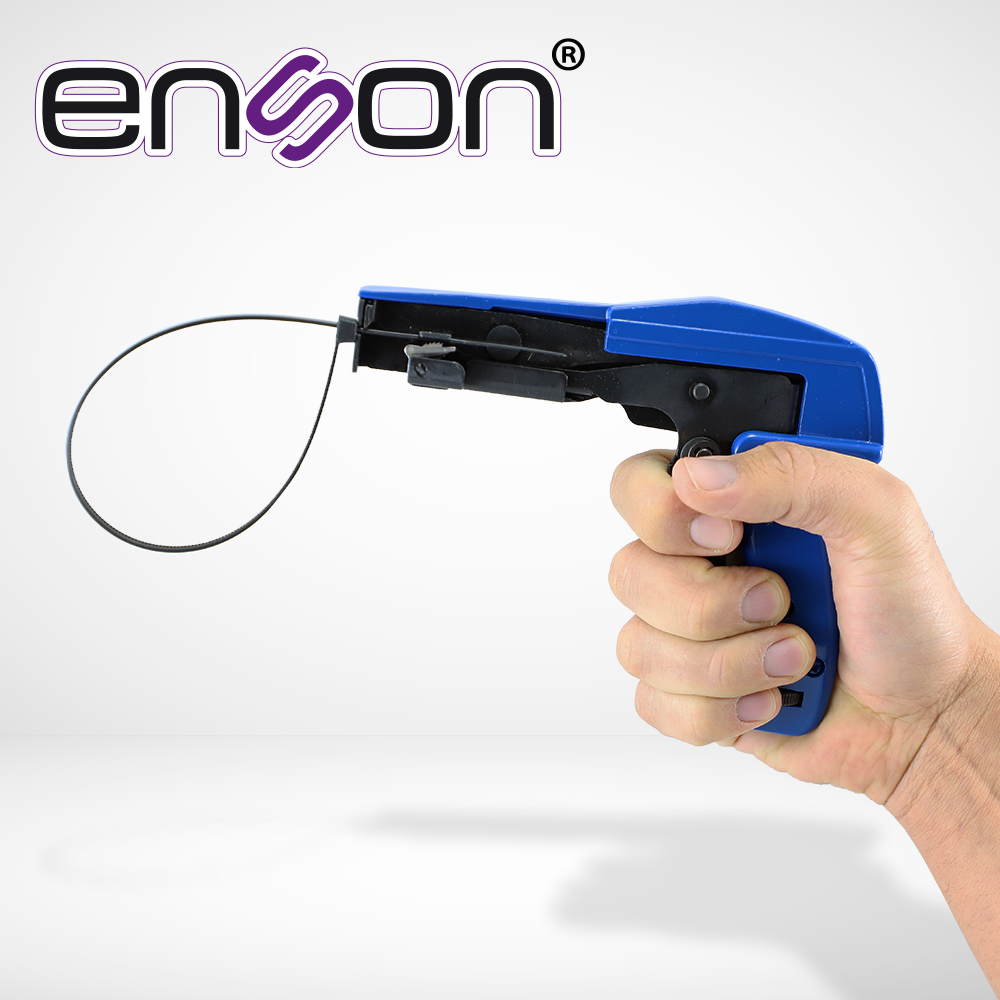 ENS-TGUN ENSON Herramienta utilizada para asegurar cinchos o sujetadores de plástico alrededor de objetos para mantenerlos juntos o asegurados La pistola para cinchos es una herramienta eficiente y confiable que agiliza el proceso de asegurar objetos con cinchos de plástico. Su diseño ergonómico y duradero la convierte en una opción popular en una variedad de aplicaciones, desde la industria de embalaje y envío hasta trabajos de construcción y sujeción general. Antes de utilizar la pistola para cinchos, debes asegurarte de tener los cinchos adecuados