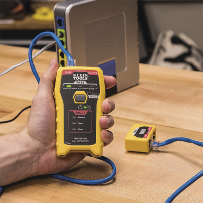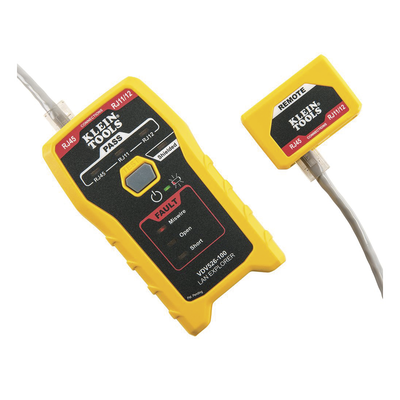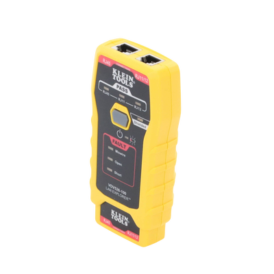 - Probador de cables con botón único de prueba de cables de voz y datos terminados RJ11, RJ12 y RJ45.