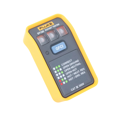 El comprobador Fluke ST120 GFCI comprueba que los cables de la toma de corriente están conectados correctamente al sistema eléctrico del edificio. Mediante los LED de alto brillo y el gráfico incluido puede verificar rápida y fácilmente el cableado de una toma de corriente. Los comprobadores ST120, capaces de identificar diferentes errores comunes de cableado, incluida la inversión de fase y neutro o la conexión abierta de tierra, le proporcionarán la máxima confianza en su próximo trabajo.
