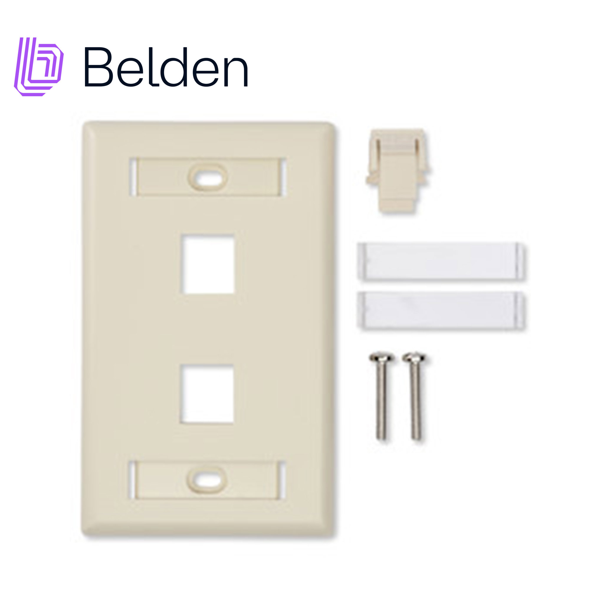 PLACA DE PARED (FACEPLATE) BELDEN AX103923 2 PUERTO COMPATIBLE CON JACKS ESTILO KEYCONNECT UNIVERSAL CAT6A CAT6 CAT5E CONECTORES DE FIBRA ÓPTICA Y COAXIALES COLOR ALMENDRA USO INTERIOR MATERIAL PLÁSTICO UL94V INCLUYE TORNILLO 6-32 ETIQUETA DE CARTON VENTANA TRANSPARENTE
