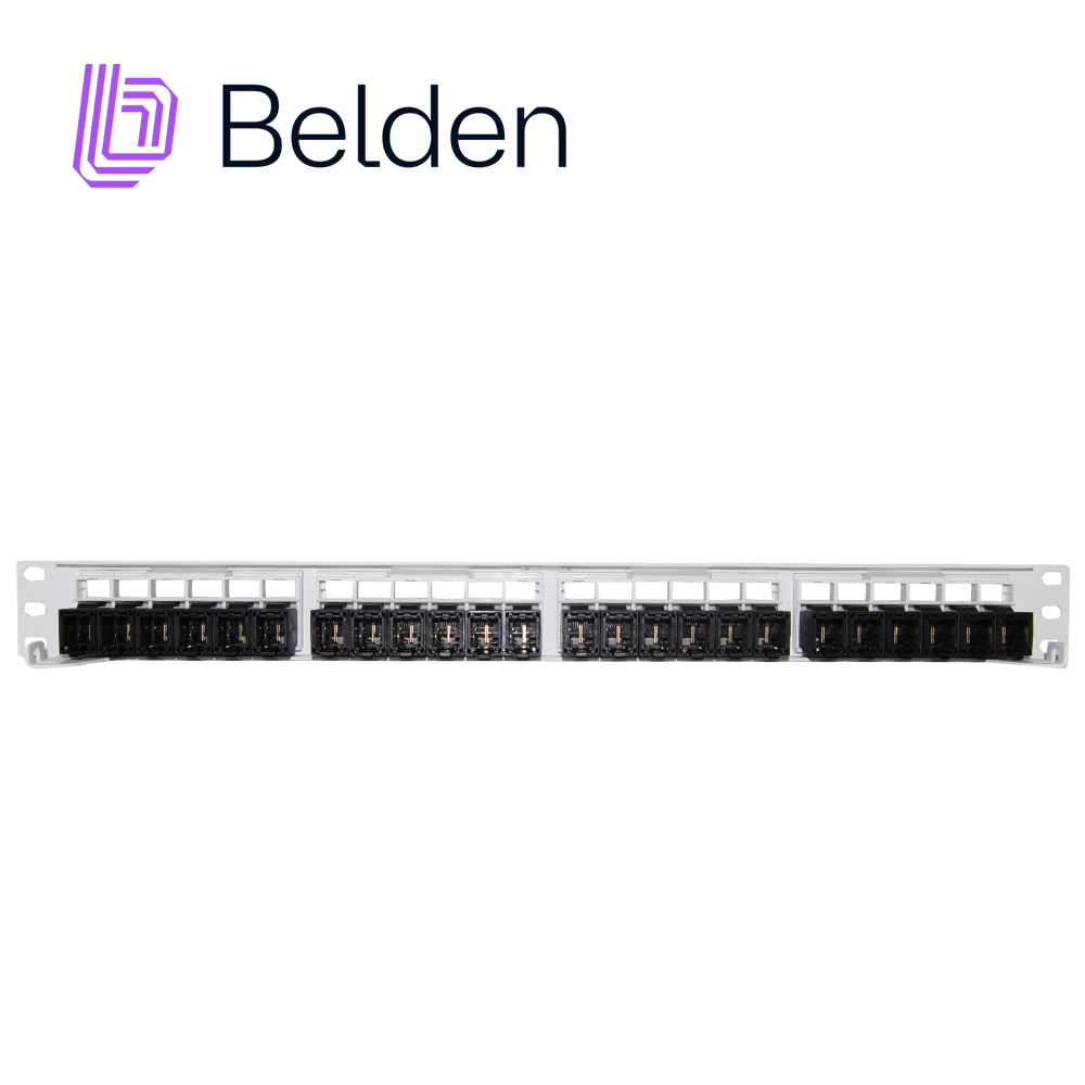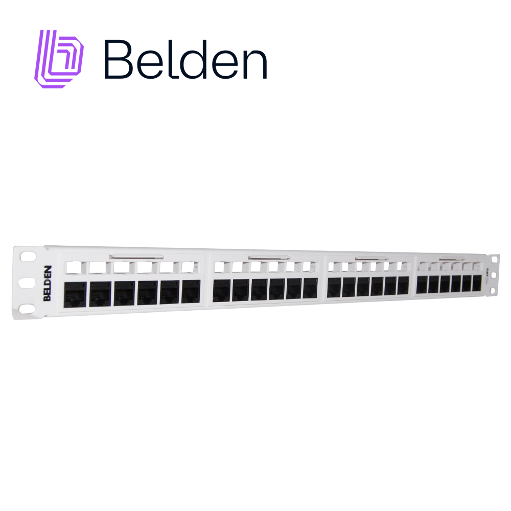 PATCH PANEL, REVCONNECT CAT6 BELDEN RV6PPF1U24WH 24 PUERTOS RJ45 (PRECARGADO) COLOR BLANCO 1 UNIDAD DE RACK HERRAMIENTA COMPATIBLE RVUTT01 USO INTERIOR CALIBRE DEL CONDUCTOR 23-24 AWG INCLUYE TORNILLOS CORREA VELCRO BARRA ADMINISTRACION TRASERA GUIA DE INSTALACION