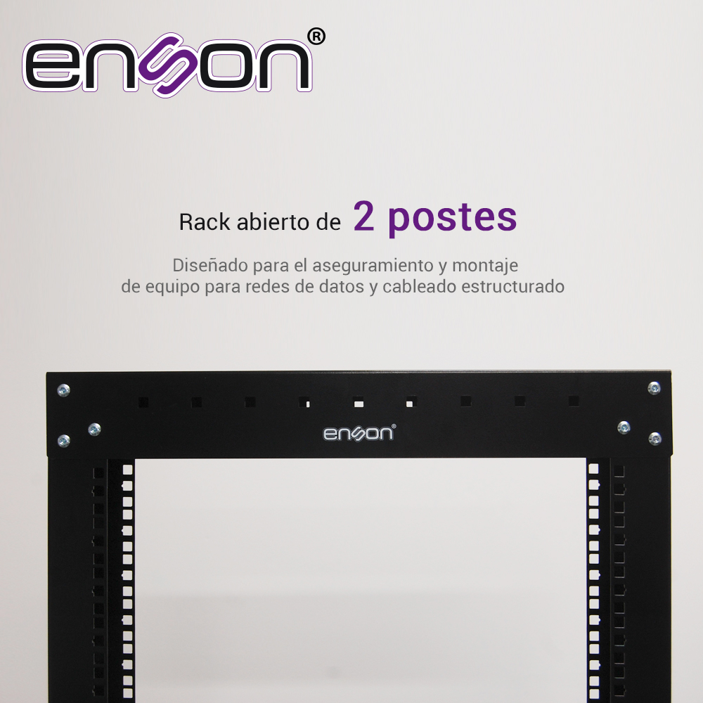 ENS-RACK244 RACK ENSONRack vertical de 2 postes. Cuenta con 42 unidades ancho de 19". Anclaje al piso Compatibe con tuercas enjauladas ENS-RT100 Se entrega des armado Accesorios compatibles Organizador vertical Modelo :ENS-VM42 Organizador horizontal Modelo :ENS-CM24 Barra de contactos Modelo :ENS-PDU6 Charola de 1 unidad de rack Modelo :ENS-RTR1U Tapa ciega Modelo :ENS-FLAT1