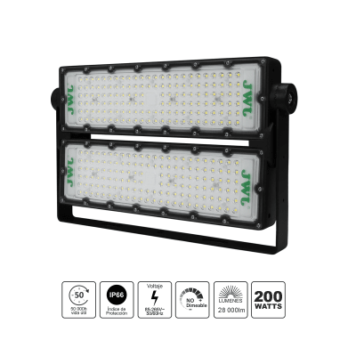 Reflector LED 200 W /350 x 250 mm / 85 - 265 Vca~ 50/60Hz / TCC 6 500 K / Uso en exterior.