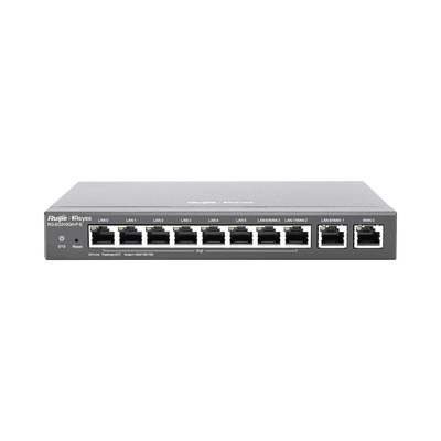 Router Balanceador con Función SD-WAN, 6 puertos LAN y 2 puertos LAN/WAN POE+ af/at gigabit hasta 110w, 1 puertos LAN/WAN gigabit y 1 Puerto WAN gigabit, hasta 350 clientes con desempeño de 1.5 Gbps asimétricos